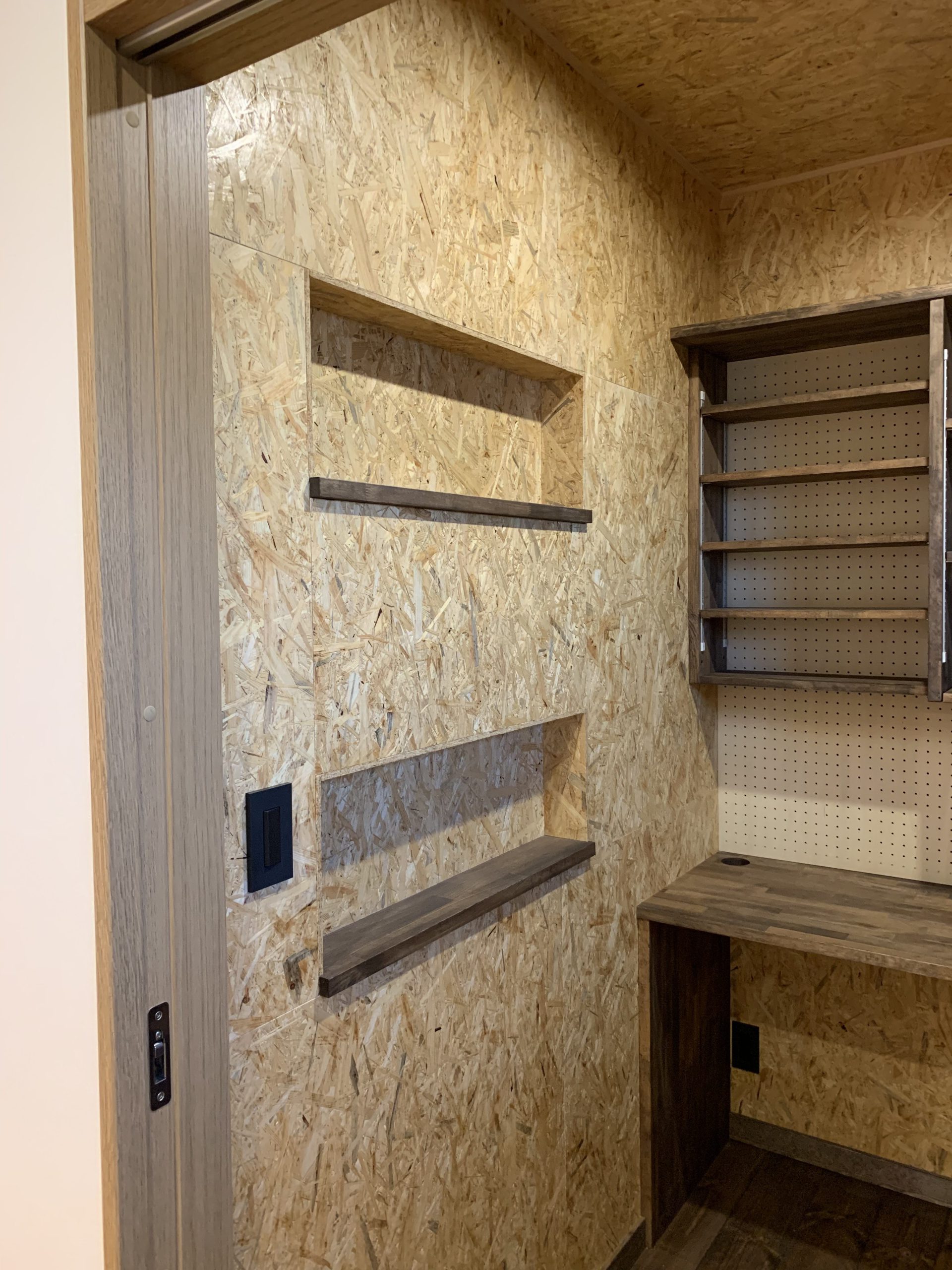 長く暮らしていても飽きのこないように内外装共に出来るだけシンプルにしつつもご自分たちのこだわりをそれぞれのスペースにしっかりと盛り込みました。ご主人は男性ならきっと憧れる自分だけの世界に浸れる隠れ家的書斎スペース、奥様は家事・子育て・たまに家でするお仕事を効率よくこなせるように1Fの収納スペース・家事動線・ワークスペースが使い易くまとまった家が完成しました。